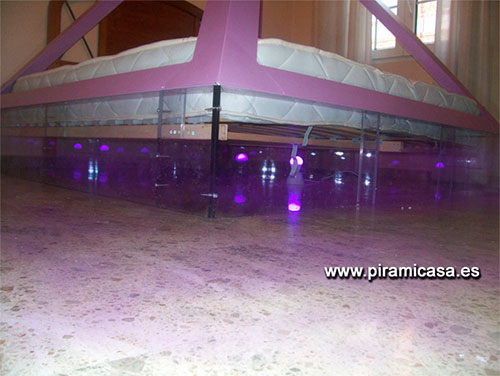 Его главное преимущество в том, что он позволяет вам разместить свет, который меняет цвет (входит в комплект модели), давая цвет по вашему выбору с помощью пульта дистанционного управления, с автоматическим или фиксированным изменением, а также выбирая интенсивность света, который при нахождении под сама по себе пирамида не беспокоит партнера или самого человека, когда они встают ночью.