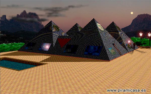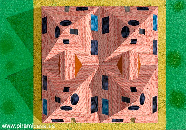 Эта модель особняка-пирамиды основана на модели «Vital», но состоит из четырех пирамид, что создает ультрасовременный дом великолепного стиля и площади. В общей сложности 484 м², плюс верхние этажи четырех пирамид, или в общей сложности около 600 кв. м полезной площади. Каждая из пирамид имеет свою собственную функцию, но в зависимости от того, как они связаны со своей ориентацией, мощность увеличивается в результате эффекта, который мы называем «пирамидальной конкатенацией». Внутренняя планировка адаптирована к этому явлению, чтобы получить максимальную терапевтическую и профилактическую пользу для здоровья, вызванную пирамидальным эффектом, а также сохранить продукты питания, семена на неопределенный срок и многие другие преимущества и области применения пирамиды. На самом деле Гиза-4 — это ультрасовременный, высокотехнологичный особняк. Сейсмоустойчивый, с высокой устойчивостью к ветрам, в том числе ураганным.
