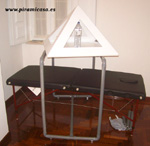 A mesa de PVC é muito leve, desmontável, pode-se regular em altura e não interfere com o campo magnético da pirâmide.