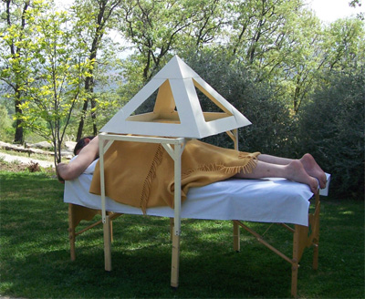 Para terapias de tratamento local, utilizando especialmente o efeito da ANTIPIRÂMIDE que é produzida ABAIXO da pirâmide.